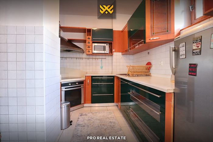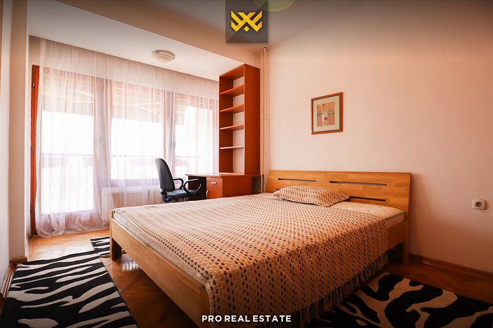 The apartment has a southern and western orientation and is fully functional, furnished, and has the following layout: living room, kitchen, three bedrooms, one bathroom, one toilet, and a balcony.