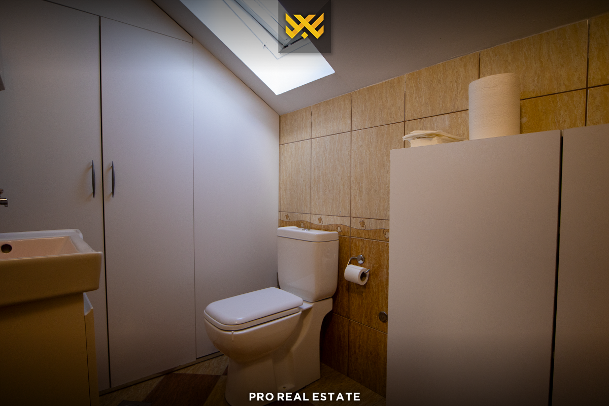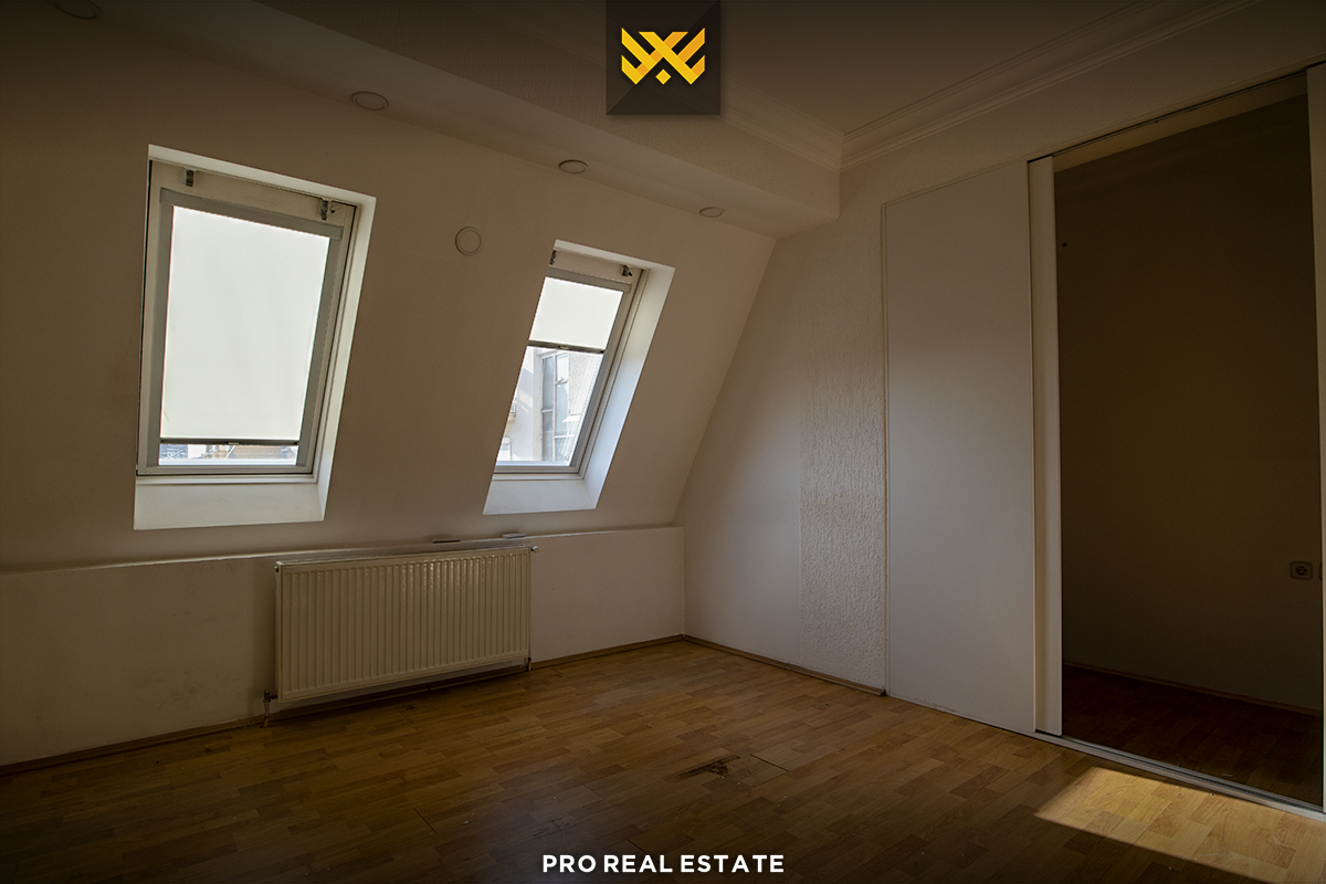 The apartment offers sufficient parking space, is located in the city center with close access to main roads, banking services, schools, kindergartens, health houses, and is in proximity to all necessary services while being very suitable for an office.