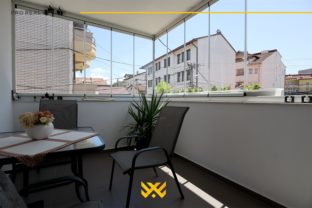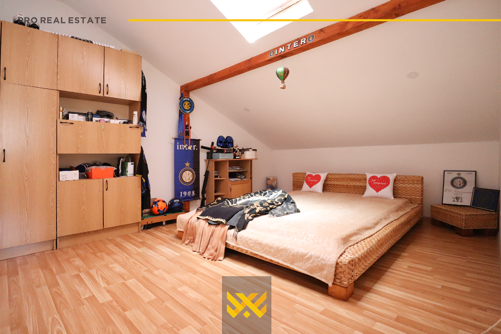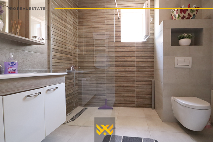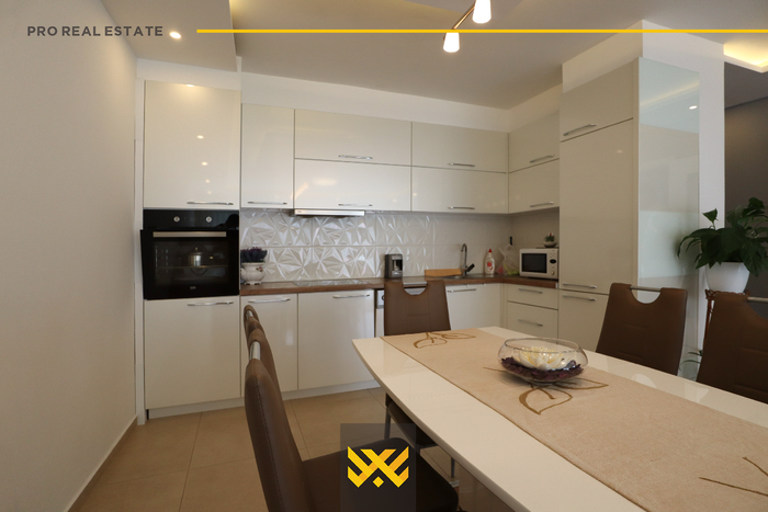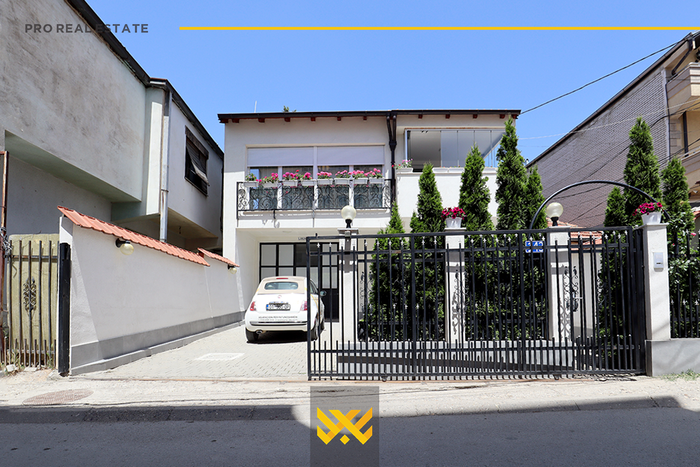The house with an area of 300m² is located in the Dodona neighborhood, with orientation from the northwest and southeast. It is fully furnished, modern, and combined with a lot of style and elegance, divided into a basement, ground floor, and first floor. It has the following layout: the basement has a garage, the ground floor has a living room, kitchen, two bedrooms, a bathroom, and a balcony, the first floor has two bedrooms, a bathroom, a laundry room, another bathroom, and a balcony. It has a Pellet heating system. It is located in a quiet neighborhood suitable for living, with quick access to the main roads of the capital.