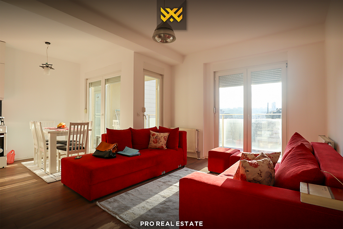 A 70m² apartment is offered for rent located in Lakrishtë, on "Tirana" street in the "Ramiz Sadiku" complex, built by Prime Group.