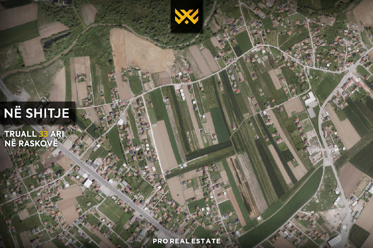 For sale is a plot of land with an area of 33 Ari, located in Raskovë, Obiliq, on the Pristina - Mitrovica highway.