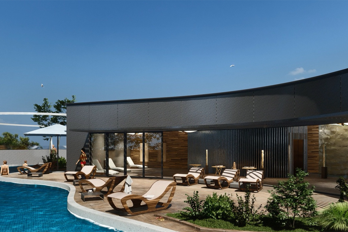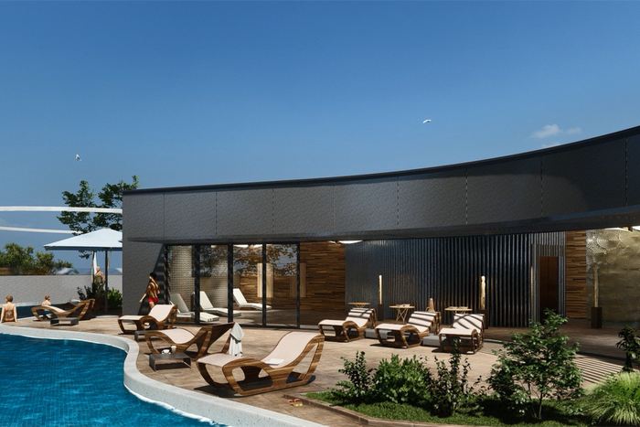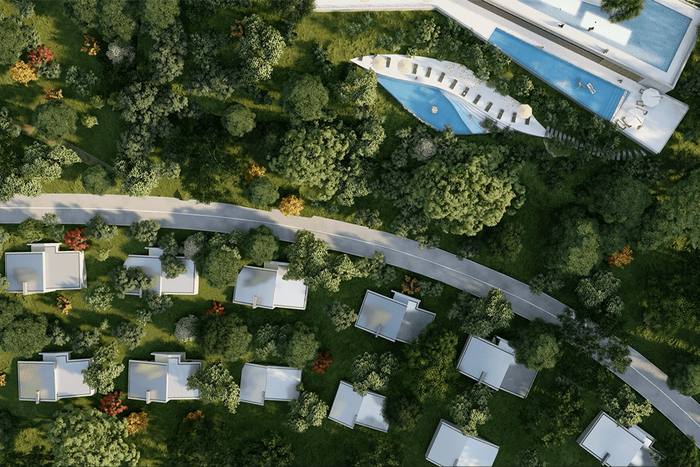 The villa belongs to the CHESTNUT type, has orientation from all sides thus offering natural light throughout the day in all spaces with this arrangement of interior spaces; living room, kitchen, two bedrooms, bathroom, and terrace.