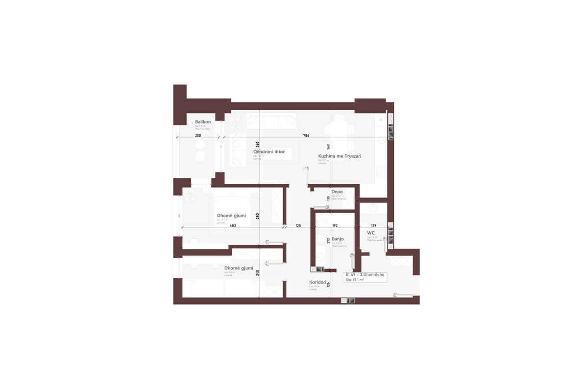 For sale is an apartment with an area of 99.1m², located in Prizren, on "Besim Shala" Street, in the Premiere Residence complex.