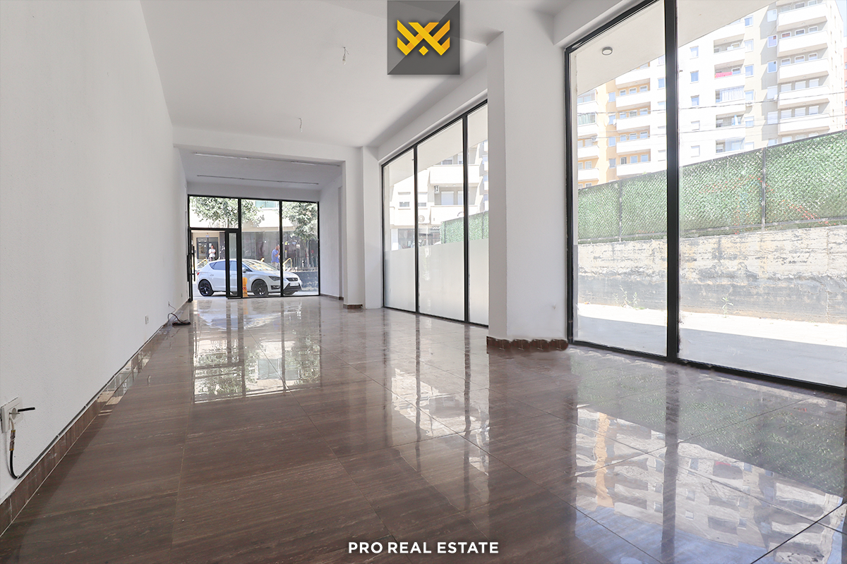 For rent, a commercial space with an area of 74m², located in Mati 1, on "Muharrem Fejza" street, near "SF Farmacia".