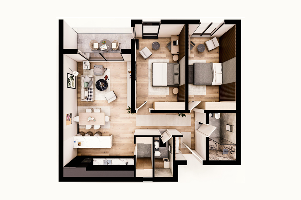 It is located in a new building that meets all the conditions of being built to the highest European standards, thus enabling a very comfortable life for its residents.