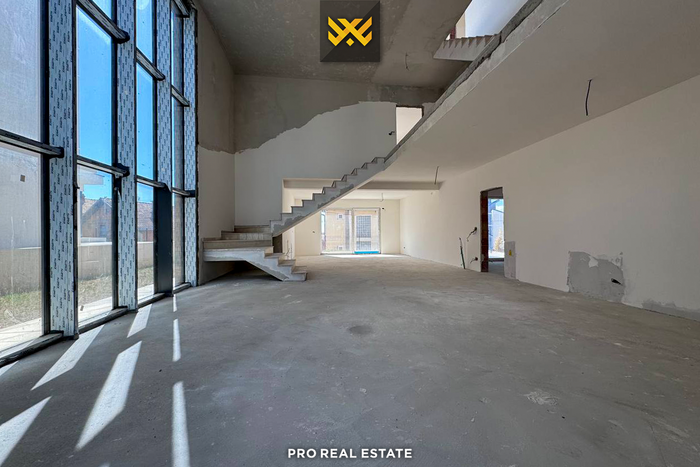 ground floor: has an area of 150m², a living room with a gallery up to 5.5m in length, one bedroom, a bathroom, garage,