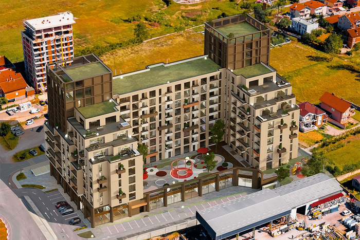 The complex is located in a highly frequented area, just 5 minutes from the City Center, 5 minutes from the Market, and 5 minutes from the "Ibrahim Rugova" Highway.