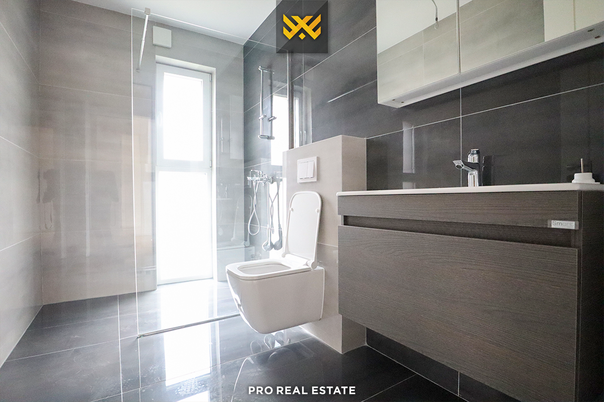 The house is oriented from all sides, structured on a basement and two floors with the following organization of interior spaces: living room, kitchen, four bedrooms, three bathrooms, two storage rooms, and two balconies.