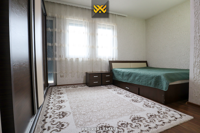 The house is oriented from all sides, allowing for full daylight illumination throughout the day. It is structured on the ground floor and attic, with the following layout of interior spaces: living room, kitchen with dining area, six bedrooms, two bathrooms, a toilet, and also has two premises on the ground floor.