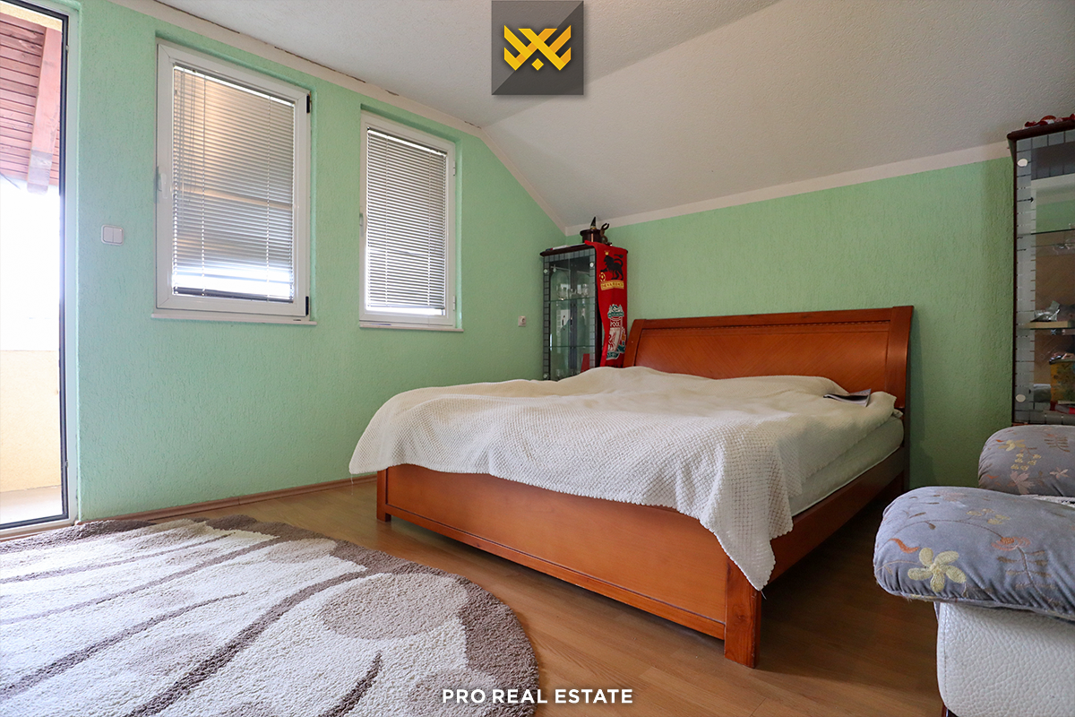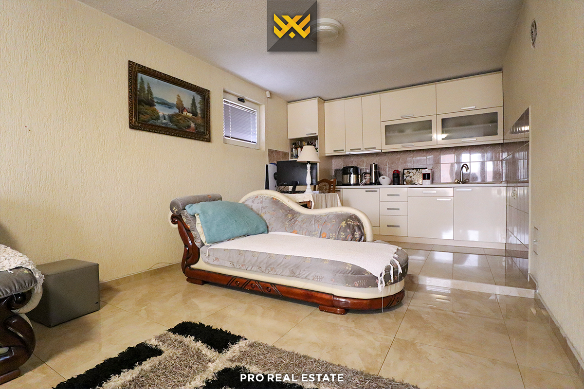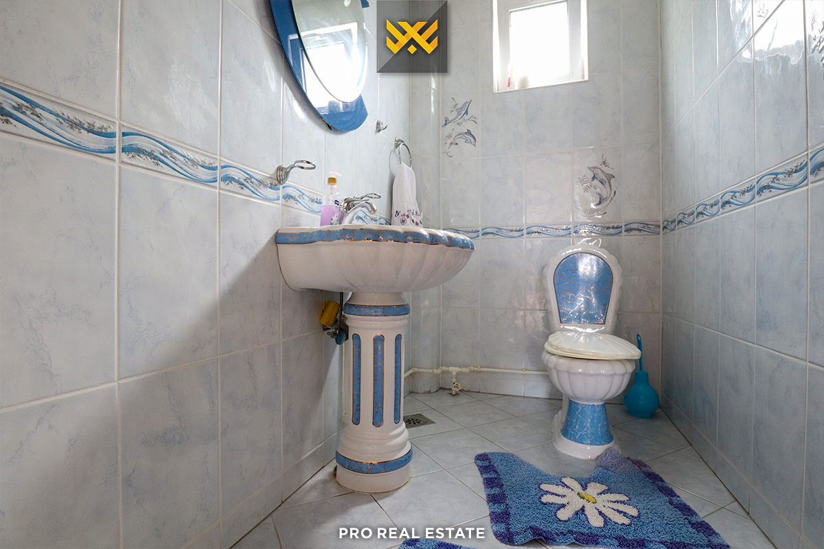 The house has orientation from all sides, allowing for full lighting throughout the day. It is structured on the ground floor and two upper floors, with the following layout of internal spaces: living room, kitchen with dining area, five bedrooms, one bathroom, toilet, and terrace.