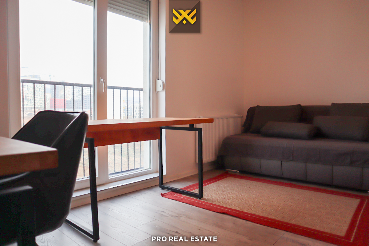 The apartment has a view of the street, is situated in a developing area, with close access to main roads and near all necessary services.