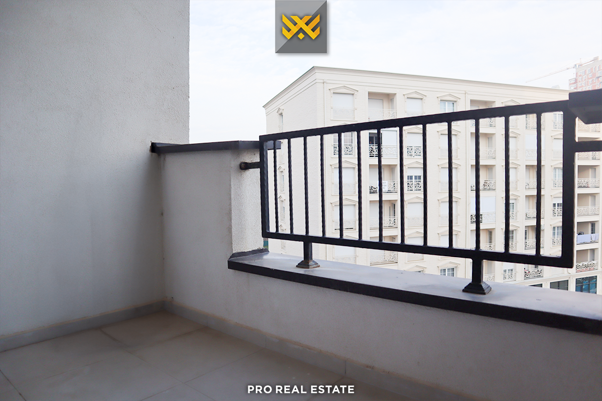 The apartment is east-facing and has the following layout; living room, kitchen, one bedroom, one bathroom, and balcony.