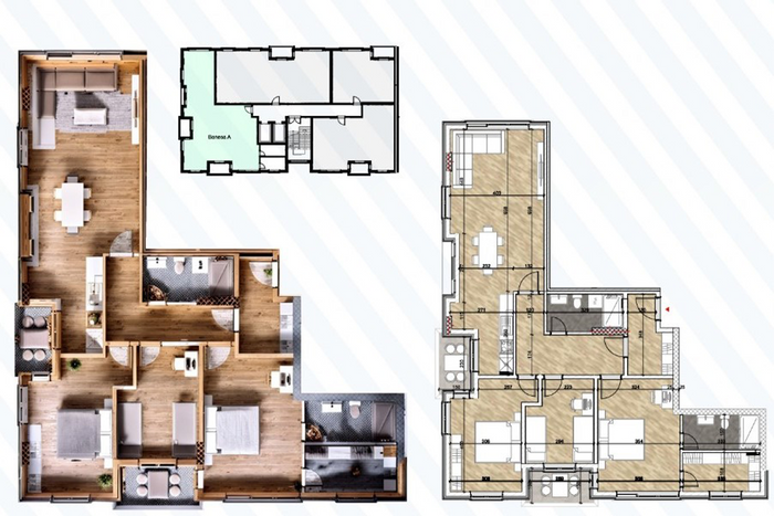 Two apartments are offered for sale, each with an area of 137.57m², located in Emshir, on "Pajazit Ahmeti" Street, in the Mercom Invest complex, built by Mercom Company.