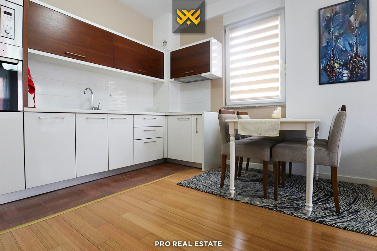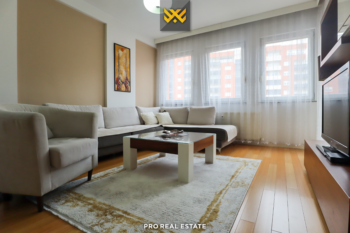 The apartment is situated in a well-developed area with noticeable traffic, near nurseries and schools, with access to the main road as well as close to all necessary services.