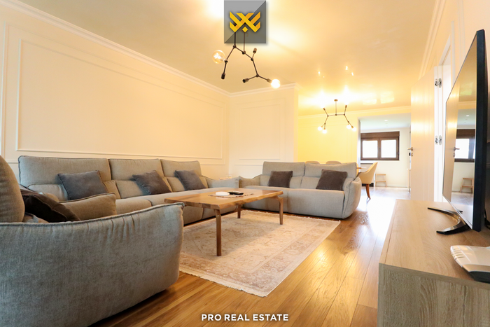 The house has orientation from all sides, structured with a basement of 13.90m², ground floor of 109.63m², and one upper floor of 103.55m², featuring the following layout; living room, kitchen, five bedrooms, one of which is a master, two bathrooms, one toilet, storage, utility room, and four balconies.