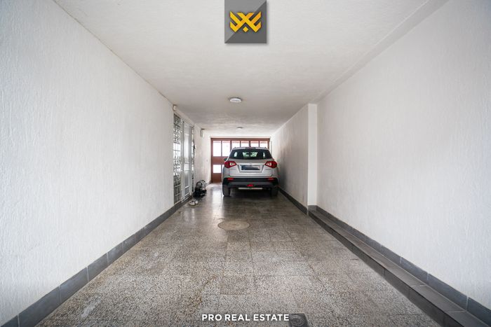 On the ground floor, there are two rooms, with areas of 45m² and 25m², a garage for two cars, a toilet, and access to the yard;