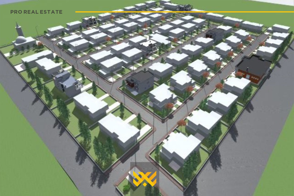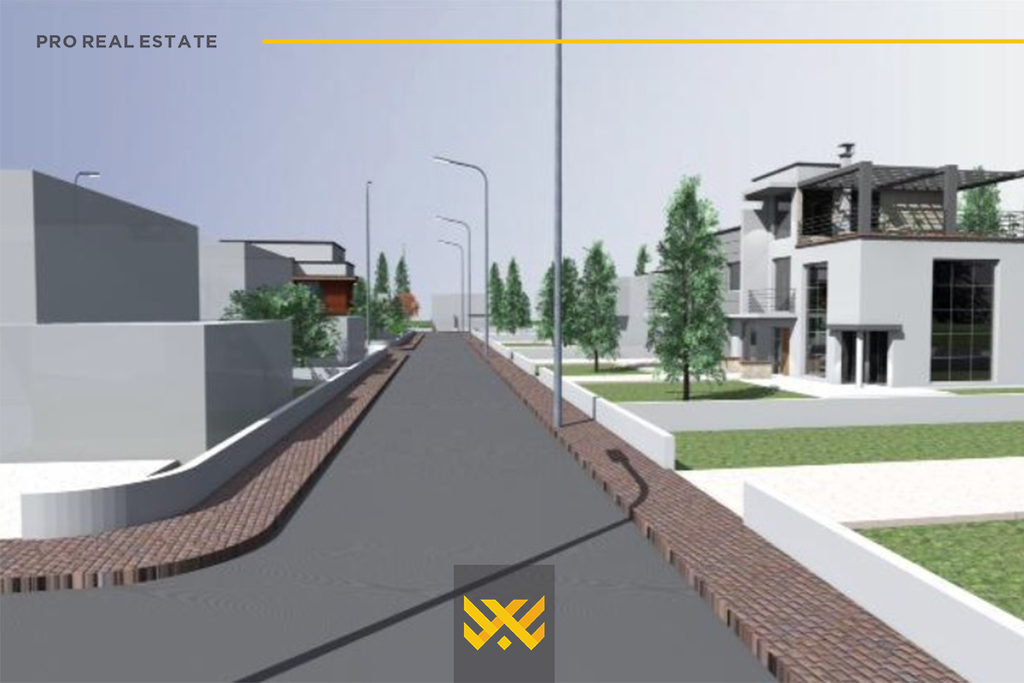 The land is situated in a very favorable location, bordered by two roads and has a square shape - characteristics that make it exceptionally suitable for the construction of houses, neighborhoods, or other development projects.