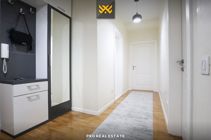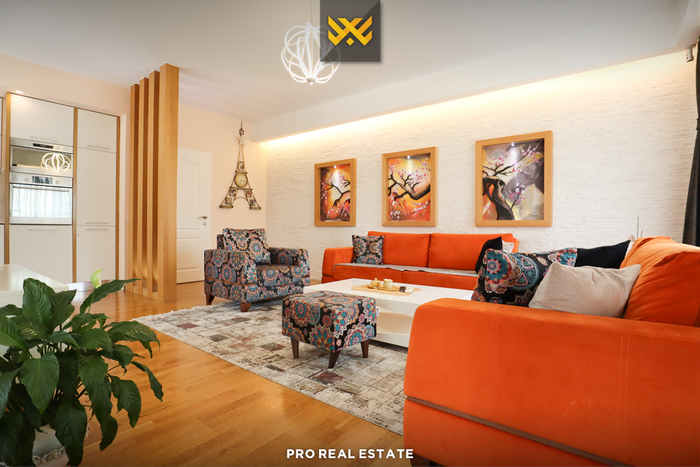 Banesa ndodhet në Pejton në Prime Group me orientim nga lindja. Me sipërfaqe prej 92m², banesa përfshin qëndrim ditor, kuzhinë me tryezari, dy dhoma të gjumit, një depo, një banjo dhe një ballkon. Është e projektuar dhe e mobiluar tërësisht me një shije të veçantë, e kombinuar mes detajeve të drurit dhe ngjyrave të ngrohëta. Përparësi e banesës është ngrohja e lidhur me sistemin qëndror të qytetit Termokos, pagesa e së cilës është e përfshirë në çmim si dhe lokacioni i favorshëm. Gjithashtu banesa ka në posedim dhe një garazhë.