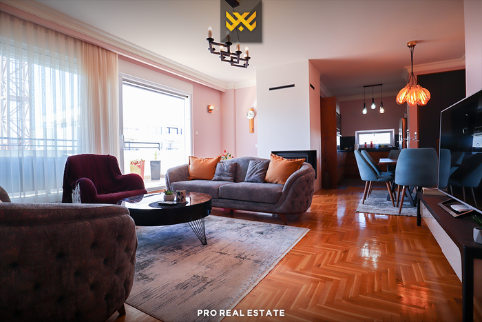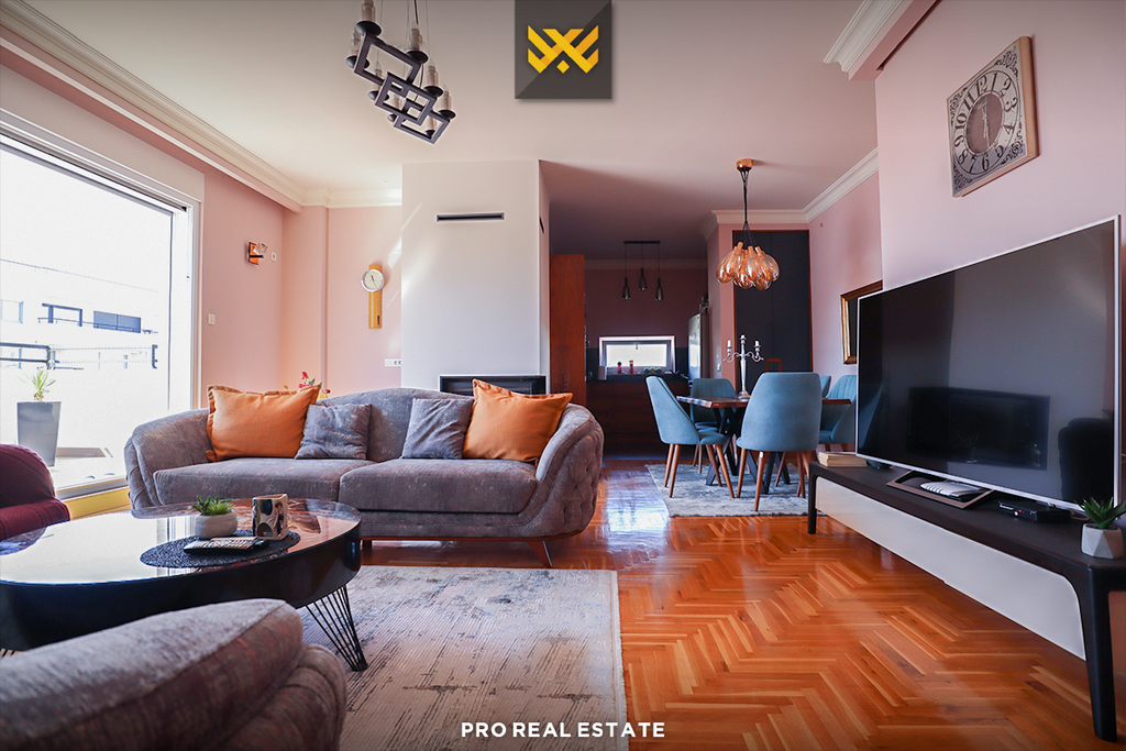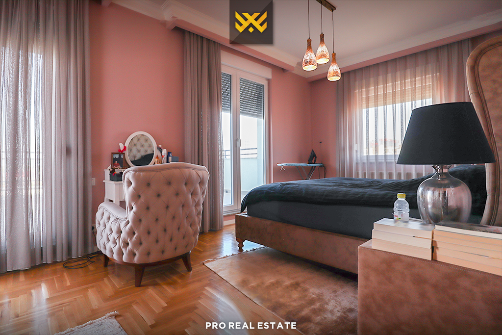 Mobiliet e jashtëzakonshme, orenditë elegante, stilimi me shumë përkushtim, kanë bërë që kjo banesë të ketë pamje madhështore, të renditur në: qëndrimin ditor, kuzhinën me tryezari, katër dhoma të gjumit, një banjo, një tualet dhe terasën.