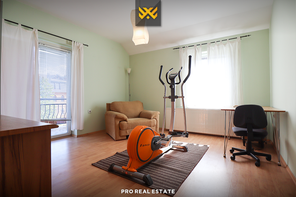 Shtëpia gjithashtu posedon hapësirë parkingu të mjaftueshme. Ndodhet në një lokacion të përshtatshëm, me qasje të shpejtë në rrugët kryesore. Në çmim janë të përfshira të gjitha shpenzimet.