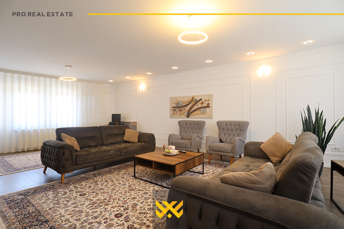 Shtëpia me sipërfaqe 1000m² ndodhet në Qendër, afër shkollës “Sami Frashëri”, me orientim nga lindja dhe jugperëndimi. Është e pajisur me fletë poseduese dhe e mobiluar në tërësi me stil modern dhe shumë elegant, e ndarë në këtë mënyrë: kati suteren, kati përdhesë dhe dy kate të tjera. Kati suteren ka dy bodrume, katër dhoma, dy banjo dhe pesë ballkone, kati përdhesë ka dy lokale dhe tri garazha, kati i parë i ka dy sallone, dy kuzhina, dy dhoma të gjumit dhe dy banjo, ndërsa kati i dytë ka pesë dhoma të gjumit (njëra prej tyre master) dhe dy banjo. Përpos kësaj renditjeje, shtëpia posedon edhe një terasë prej 250m². Ndodhet në një lokacion jashtëzakonisht të përshtatshëm për banim, pasi ndodhet në Qendër, me qasje të menjëhershme në rrugët kryesore të kryeqytetit. Sistemin e ngrohjes e ka me energji elektrike.