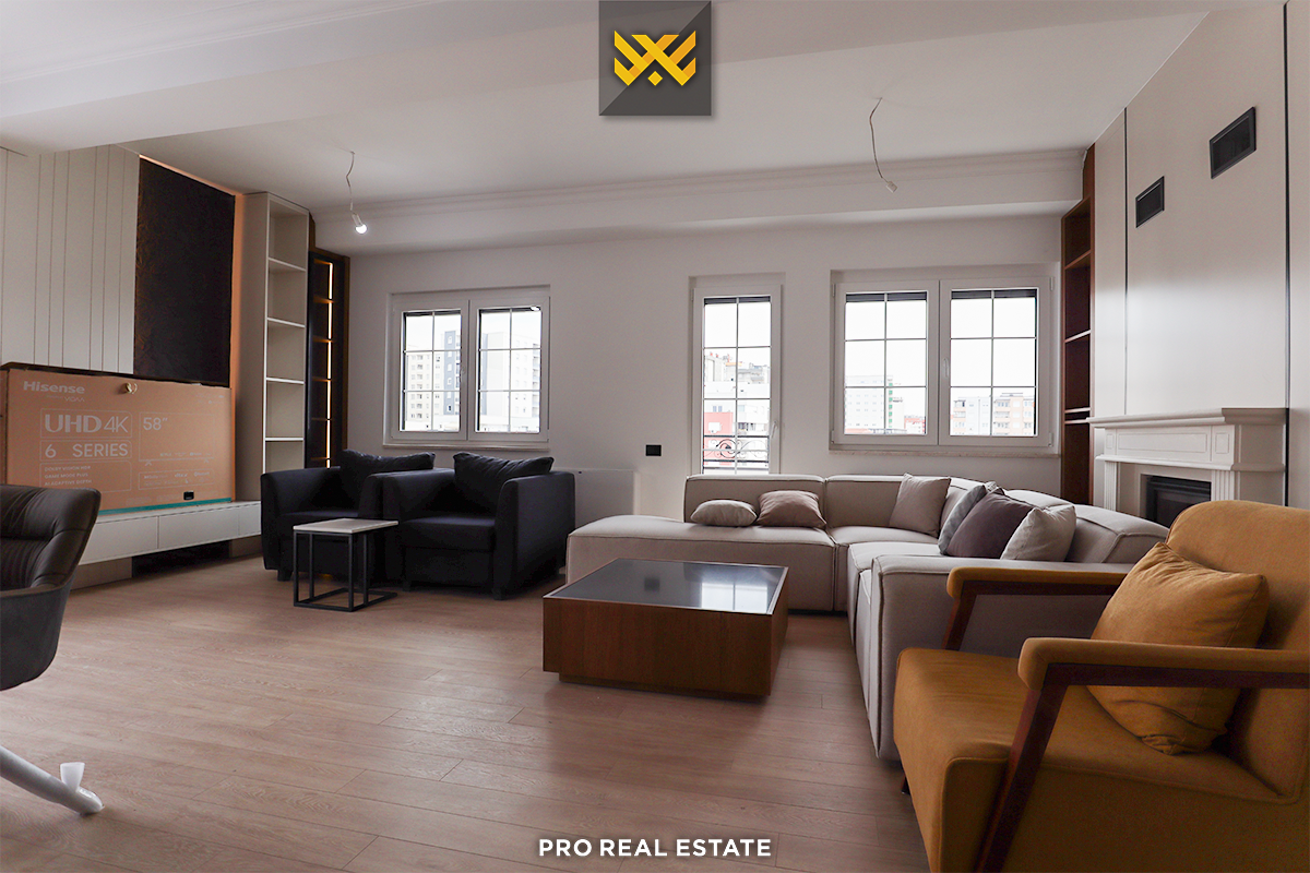 For rent is an apartment with a living area of 160m² and a terrace of 120m², located on Rruga B, behind Royal Mall.