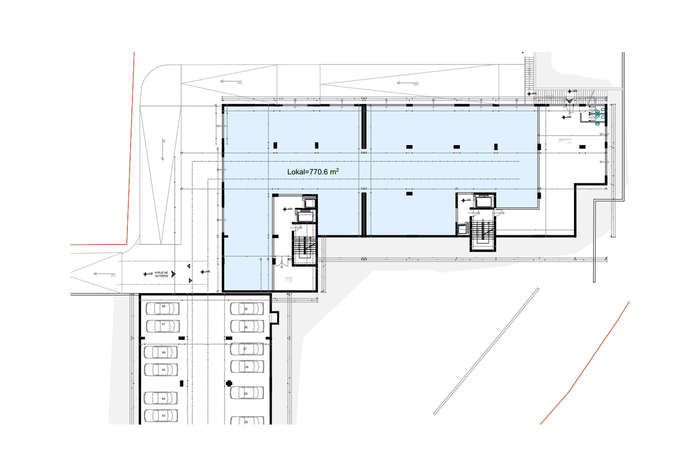 Lokali me sipërfaqe 770m² ndodhet te Prishtina e Re, ndërtim i Condori SH.P.K., në kompleksin Dora, me orientim nga perëndimi dhe jugu.