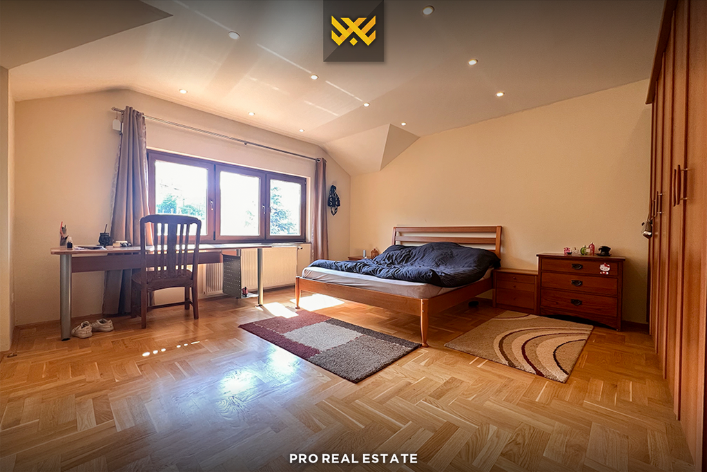 Është e ndarë në katin përdhesë me qëndrim ditor, kuzhinë, një dhomë për lavanderi, në katin e parë me qëndrim ditor, një dhomë të gjumit, një banjo dhe një ballkon, si dhe në katin e dytë me tri dhoma të gjumit (njëra master me garderobier), një banjo, një ballkon dhe një terasë.