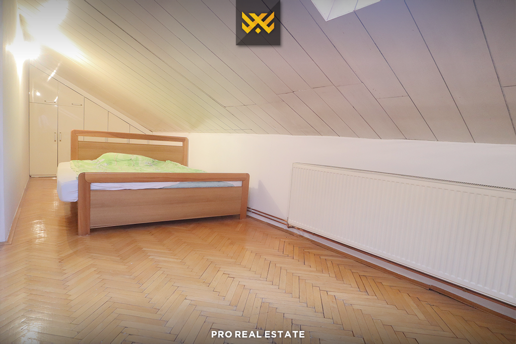 It is divided into a basement, first floor, second floor, and attic, with the following layout: the basement has a living room, a study room, and a bathroom; the first floor has a living room, kitchen, two bedrooms, a bathroom, and a toilet; the second floor has one bedroom, a study room, and a storage room, while the attic has a garage.