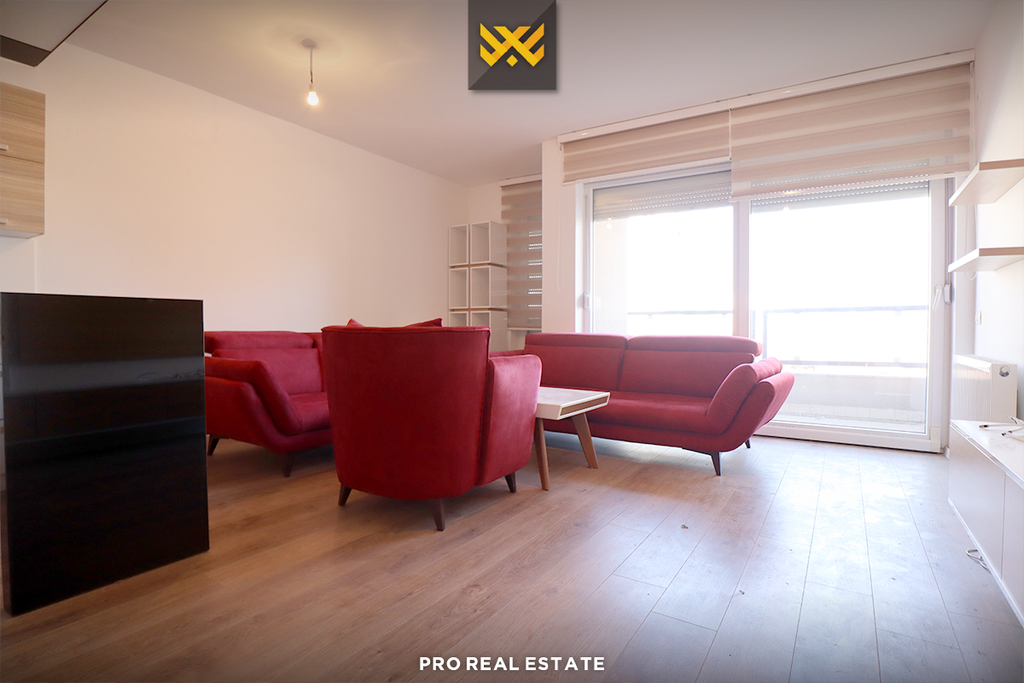 The apartment is fully furnished, modern, and ready for living, with the following layout: living room, kitchen, two bedrooms, one bathroom, and a balcony.