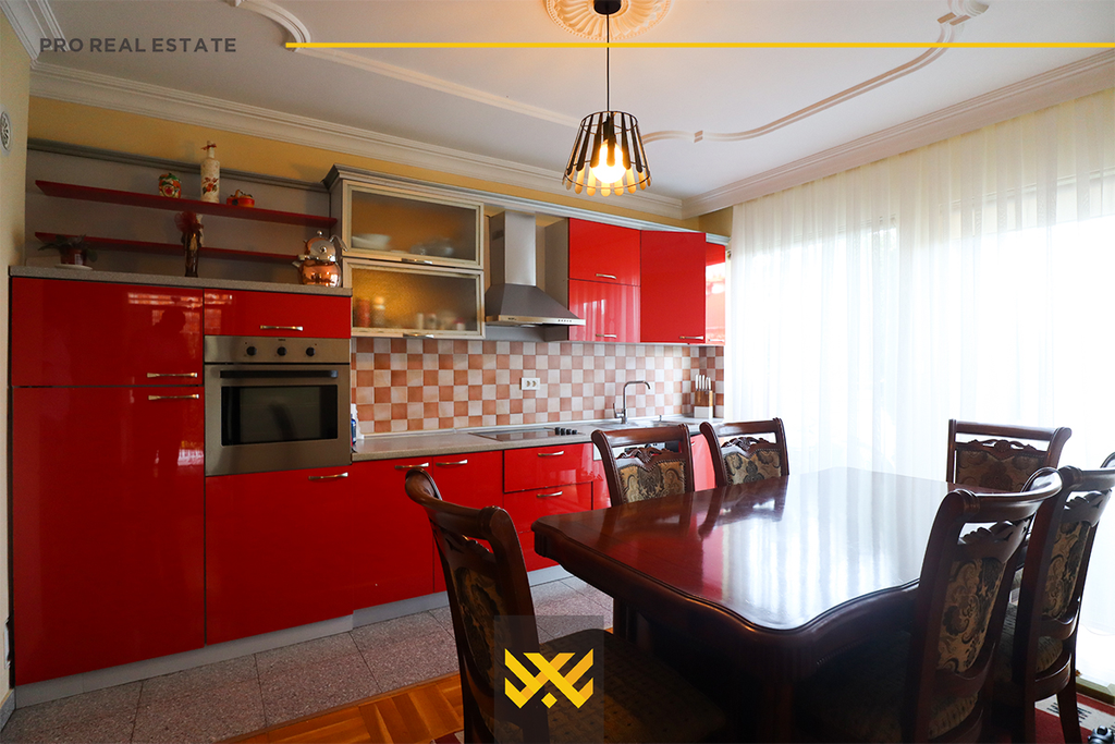 The house is located in Emshir near Prishtina Stars and sits on a 12 Ari plot. The house is divided into 2 and a half floors, has a southeast view, is fully furnished, and features central heating with electricity, a garage, as well as a well-maintained garden. The house can be used for residential purposes as well as for the development of various business activities such as a kindergarten/nursery or office.