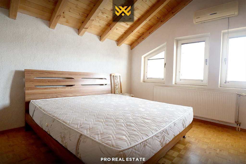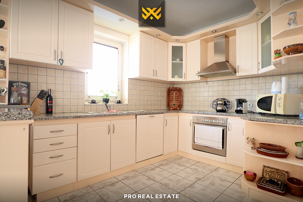 It has sufficient parking space and is located in a neighborhood that offers good living conditions, with clean air as it is near Gërmia and has quick access to the main roads of the capital.