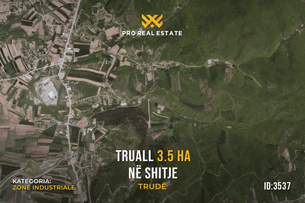 The plot with an area of 3.5 Ha is located in Trudë, in Pristina. It is equipped with ownership documents and has complete infrastructure.