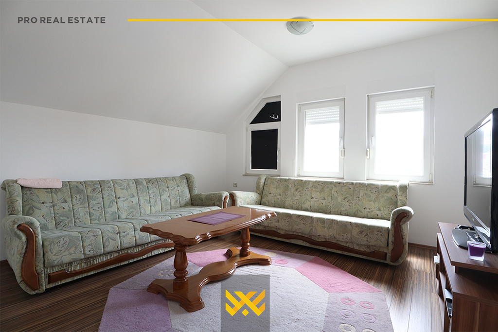 The house with an area of 300m² is located in the Medrese neighborhood, near Hajrat's Spring and close to the "Nazim Gafurri" school. It is fully furnished, quite modern and elegant with a layout of the house as follows: ground floor, first floor, second floor, and third floor. The ground floor has a garage, the first floor has the following arrangement: living room, kitchen, bathroom, and a storage room, the second floor has three bedrooms, a bathroom, and a balcony, while the third floor has three bedrooms, also a bathroom and a balcony. It has an electric heating system and also has sufficient parking space.
