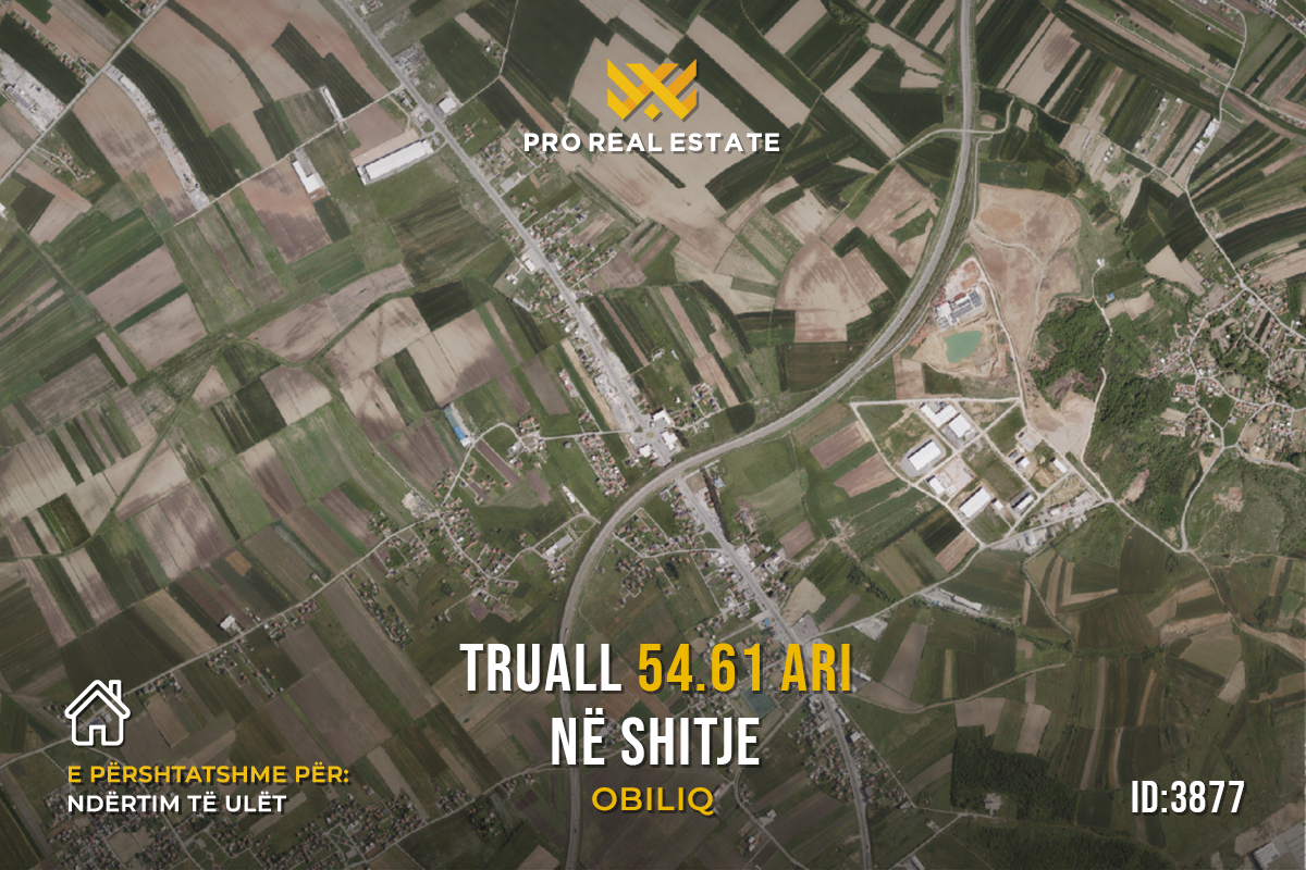 For sale is a plot of land with an area of 54.61 Are in Milloshevë, Obiliq. The land has a very large space for utilization and includes a Hotel/Restaurant with an area of 1,500 m².