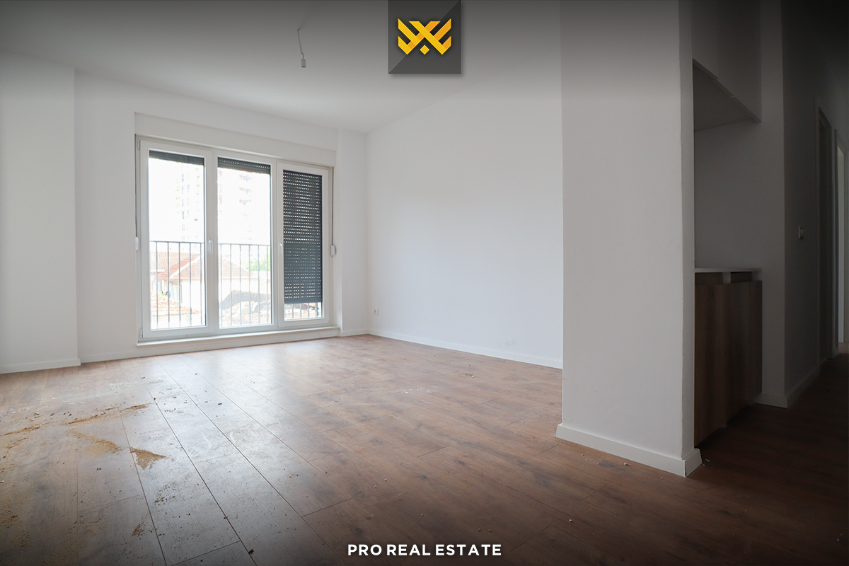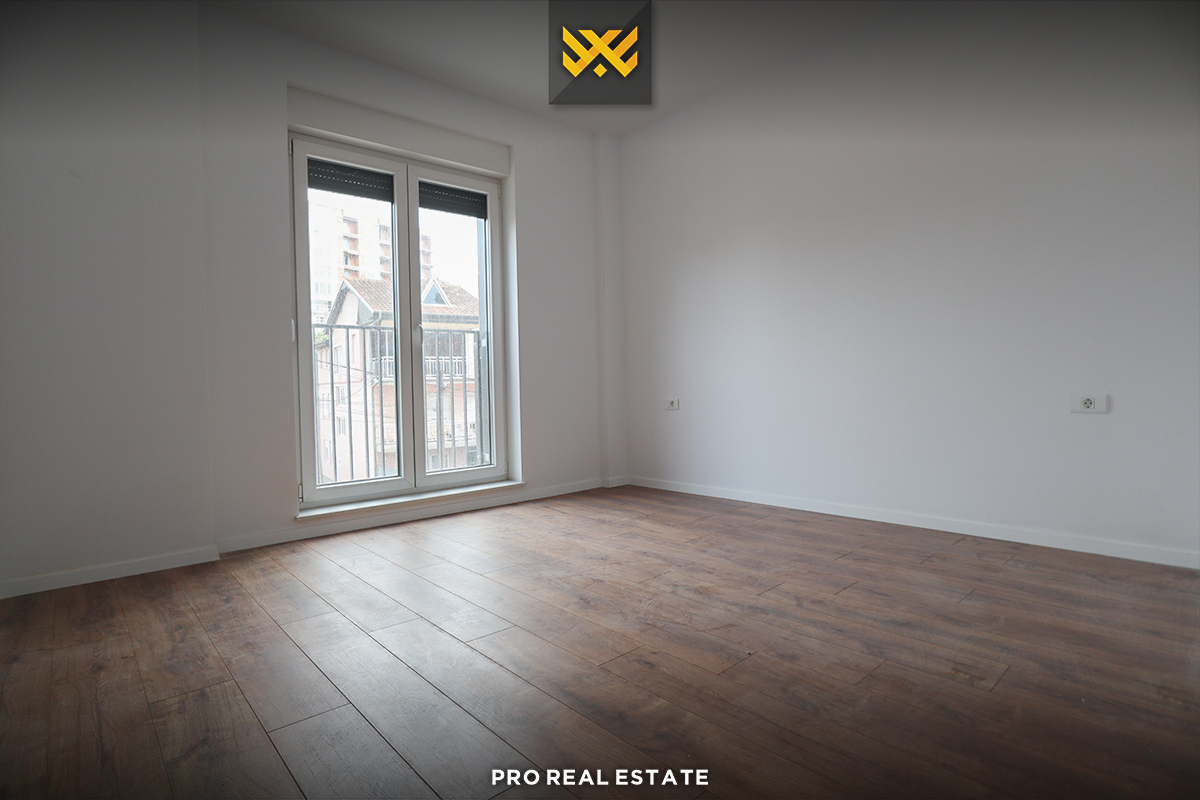 For rent is an 89m² apartment in Tophane, on Lidhja e Lezhës street, built by 'Durguti Invest' in the 'Durguti Towers' complex. The apartment has the following layout: living room, kitchen, two bedrooms, one bathroom, one toilet, a storage room, and a balcony.