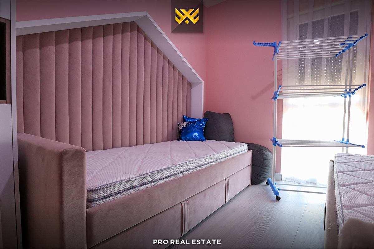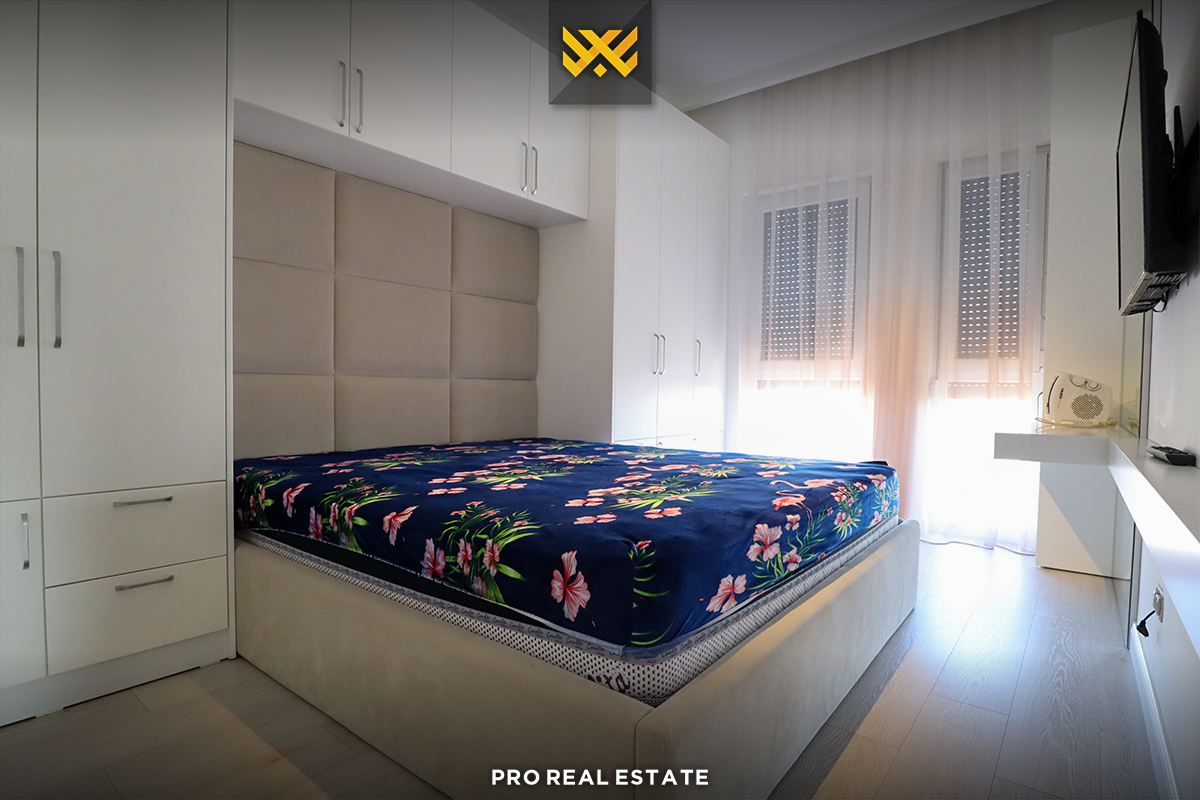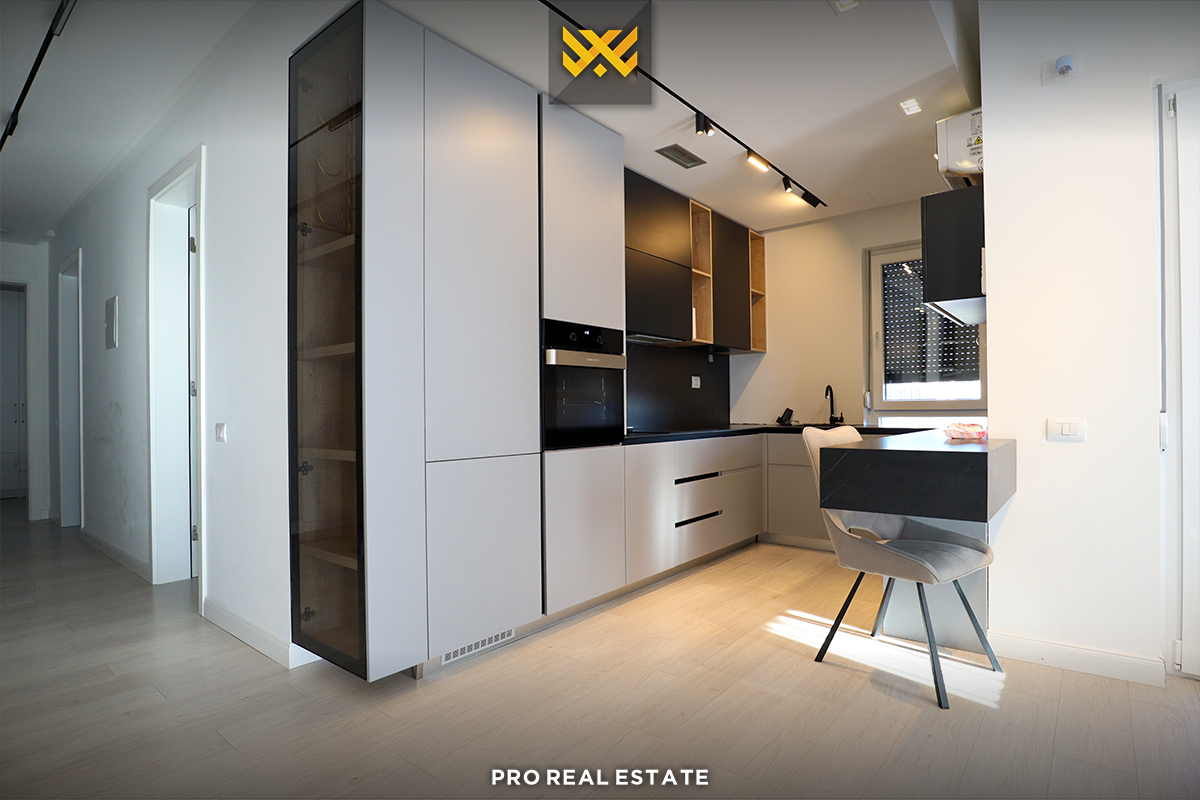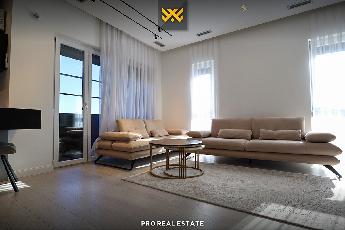 The apartment is fully furnished, elegant, and equipped with modern furniture, which includes the entirety of the apartment.