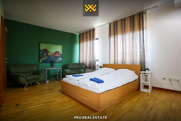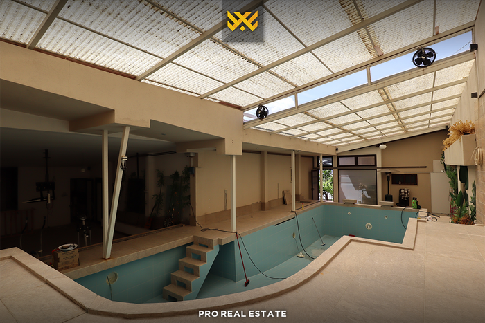 The house has a yard with an area of 9 Ari, a swimming pool, sufficient parking space, and a garage.