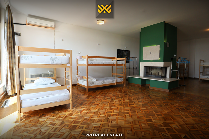The heating system is electric and wood-based, and it is also equipped with air conditioning.