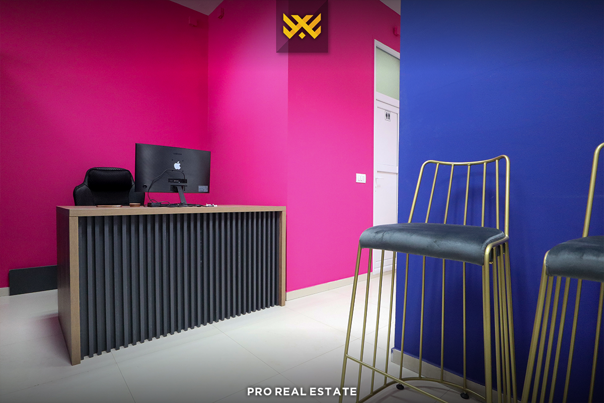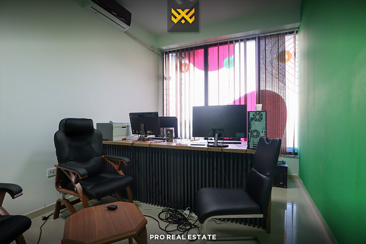 The local has a west orientation and features five usable workspaces and two bathrooms.
