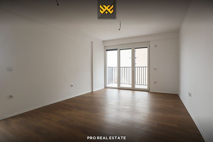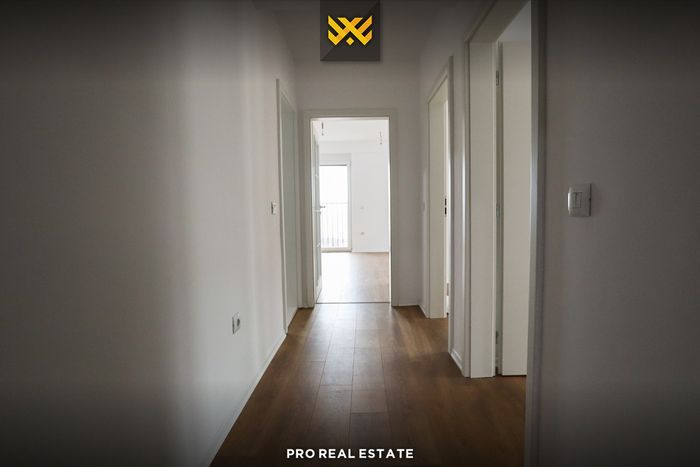 The apartment has a very good orientation from the east and west with the following layout of the interior spaces: living room, kitchen, two bedrooms, bathroom, and toilet. The heating system in this building is powered by electricity. The building also has an elevator and outdoor parking space.