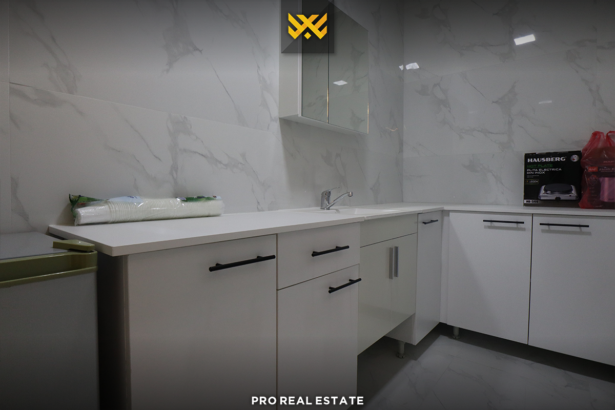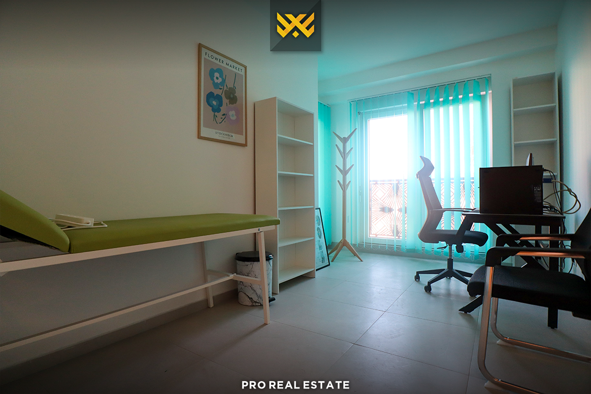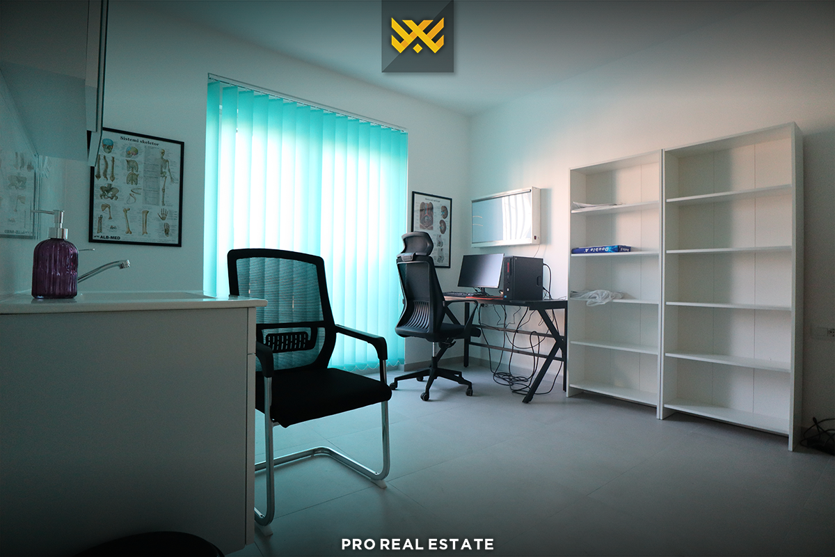 The apartment is situated in the city center with close access to main roads, banking services, health houses, and is near all necessary services, making it very suitable for offices or clinics.