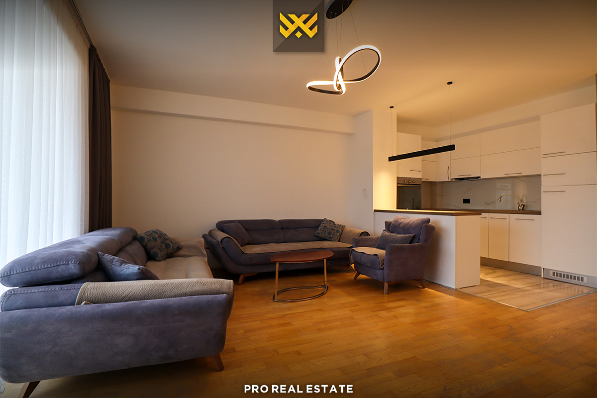 The apartment is located near the city center, in a very convenient location, close to schools as well as public transport, with easy access from main roads and in proximity to all necessary services.